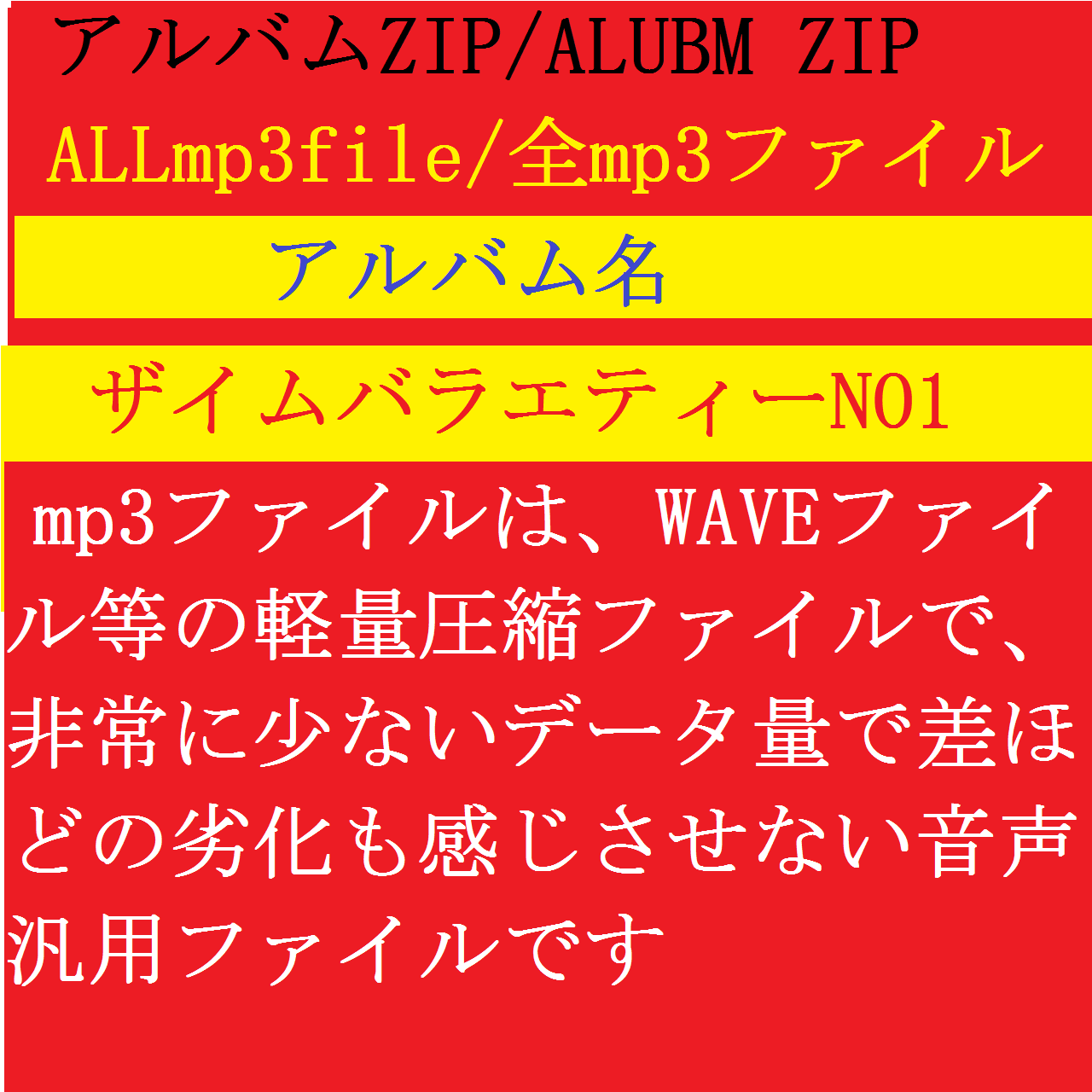ファイル名は、 ザイムバラエティーNO1,mp3ZIPフォルダ.zipです。